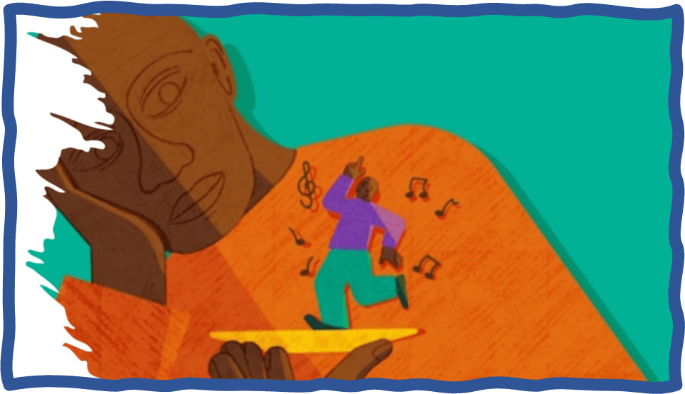 A rather great drawing in The Skinny’s review of the novel can easily be used, as I attempt here, to illustrate the double meaning of ‘burden’ between a technical term in music and a socio-psychological phenomenon. Source of cropped picture: Tara Okeke (2023) ‘Musicality, desire and Blackness in Caleb Azumah Nelson’s Small Worlds’ in The Skinny (online) [09 May 2023] Available at: https://www.theskinny.co.uk/books/features/musicality-desire-and-blackness-in-caleb-azumah-nelsons-small-worlds