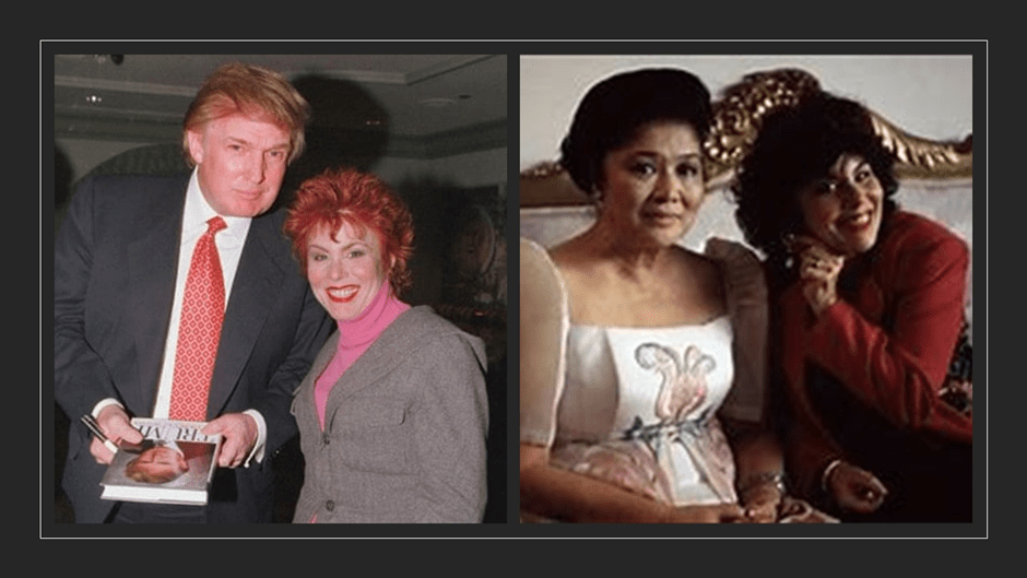 With Donald Trump when she interviewed him for her 90s series When Ruby Met… Photograph: Jonathan Furniss/BBC [Kellaway op.cit source]. With Imelda Marcos from : https://www.jewishnews.co.uk/ruby-wax-donald-trump-told-me-he-wanted-to-be-president-and-i-just-laughed/