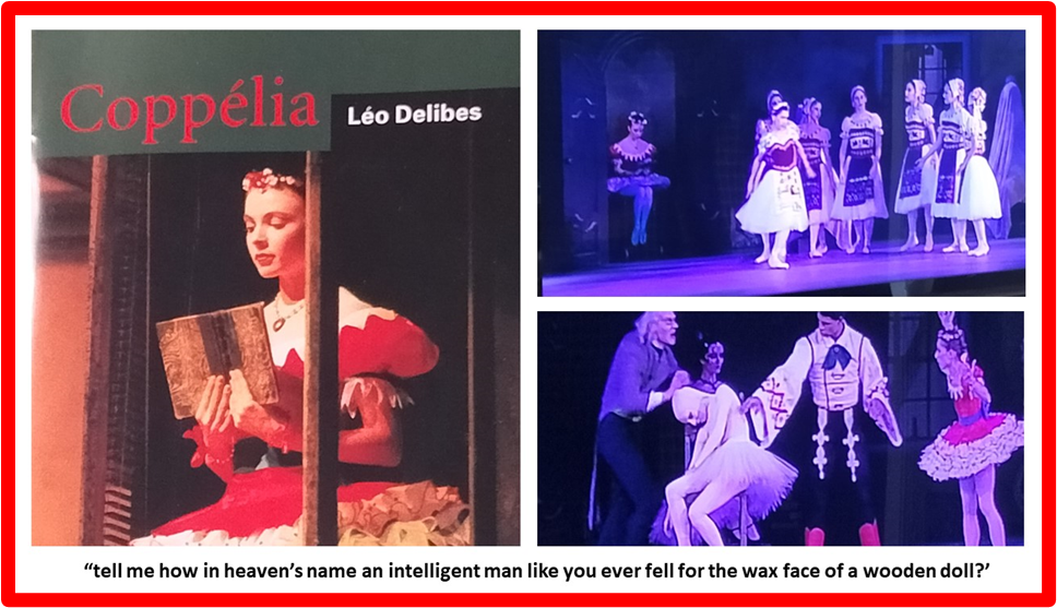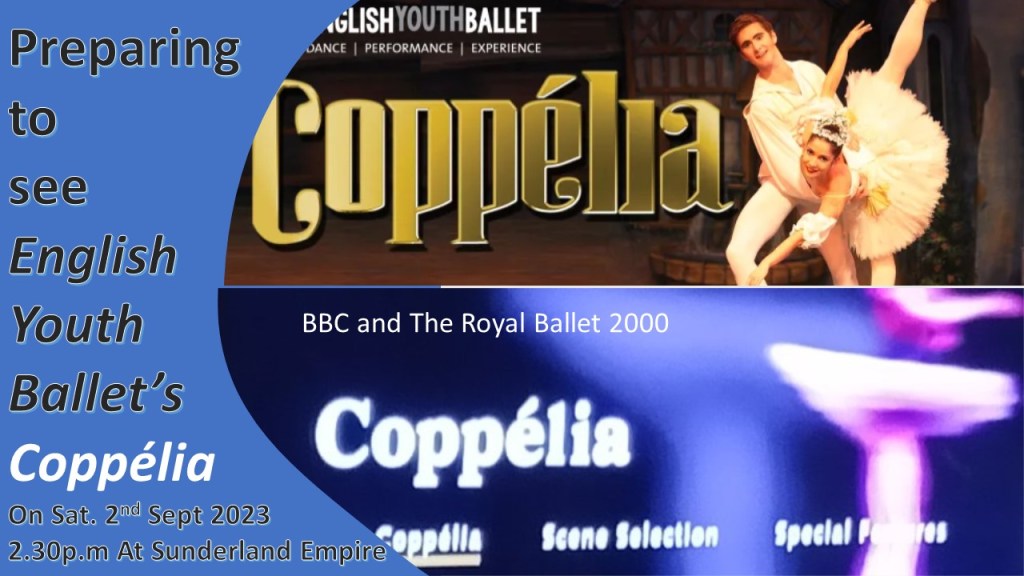 UPDATE: Well the Sunderland Empire production came but Justin had dumped me and Geoff by then and all association with us, and it turned out to be a damp squib, so I am pleased for him he missed that. It had all the trappings of decent set and middling costumery but NO live orchestra – one in the eye for Delibes that. Moreover though the principals were good – Swanilda excellent in fact – the performances lacked character beyond accuracy. But worst of all the production used an under-rehearsed and over young (some appeared to be 5-6 years old) children in the corps de ballet. The performances therefore lacked everything that makes this ballet beautiful and that extra that made it other than an a fairy-tale and a serious piece of art in performance. The issues around youth, age and sexuality were not even near the surface, though the storytelling was good mainly because of the use of a mature mime artist in casting Coppélius. We left after Act 2. See the brief blog at this link (https://stevebamlett.home.blog/2023/09/02/how-do-you-integrate-the-aim-of-child-education-in-an-elite-art-like-ballet-with-public-production/).