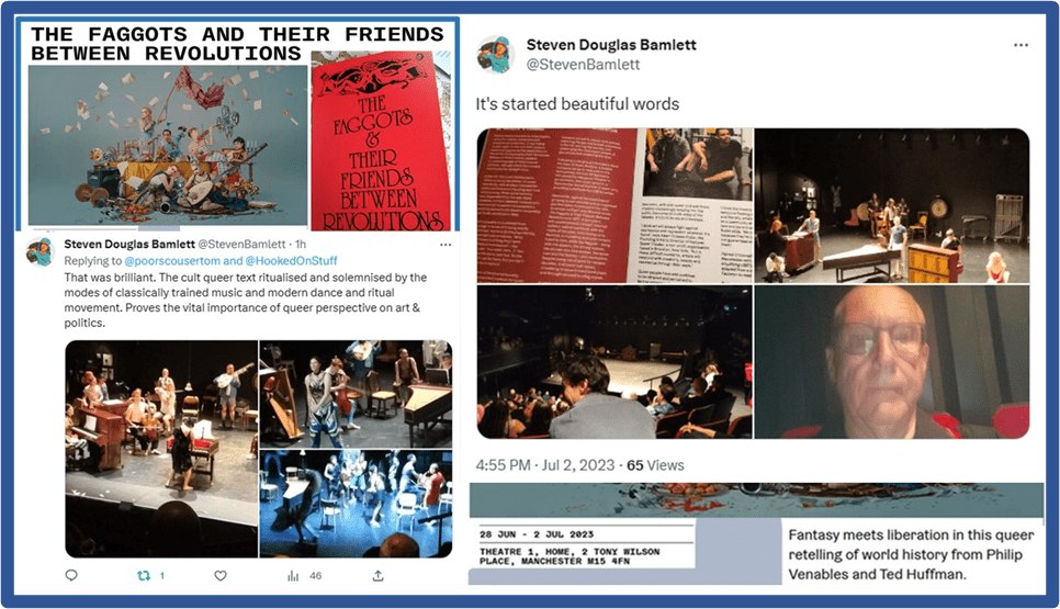 An update based on actually seeing the production of The Faggots & Their Friends Between Revolutions (based on the cult book of that name by Larry Mitchell & illustrated by Ned Asta. A brilliant show at Home Theatre 1 in Manchester on Sunday 2nd July at 3.00 p.m., as part of a selection of the items from the Manchester International Festival.
