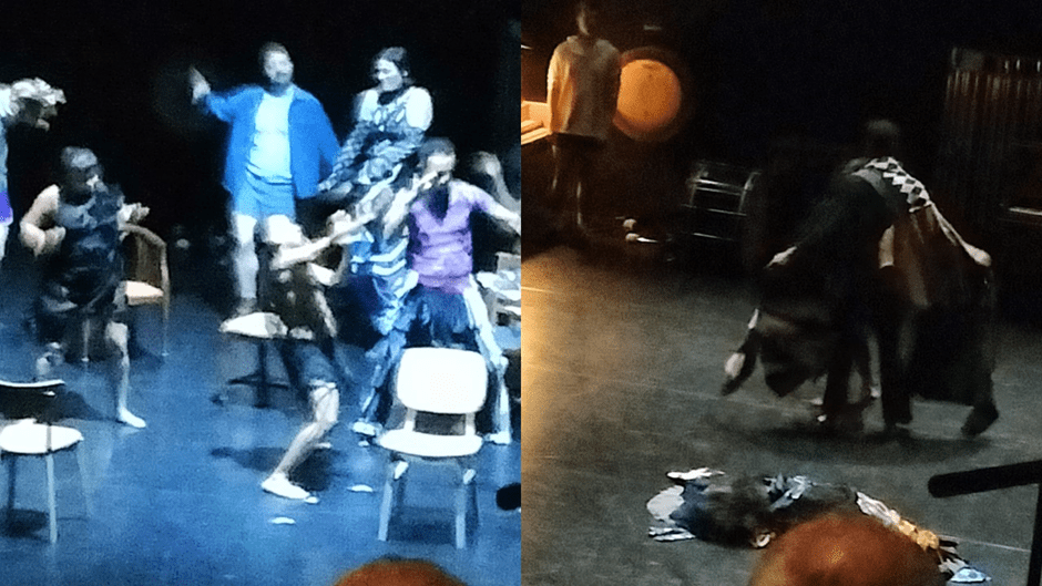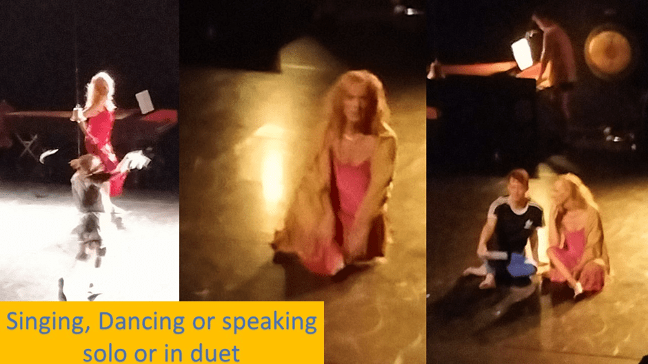 But this was a production I will never forget. It was marked as the ‘relaxed version’ of the show which seemed to mean that help was available to people who felt nervous and that the production was opened and interrupted by a hello and talk with the audience beautifully judged by Kit Green, the main narrator of the event, whose voice turned the words added and those from the original text into the appropriate kind of poetry. Kit’s (whose pronouns are either they/their or she/her by her choice) role included song, spoken word poetry or poetic prose and gestural dance and movement. One could not help but love her and the guidance she gave – its tone so witty and yet so fundamentally serious.