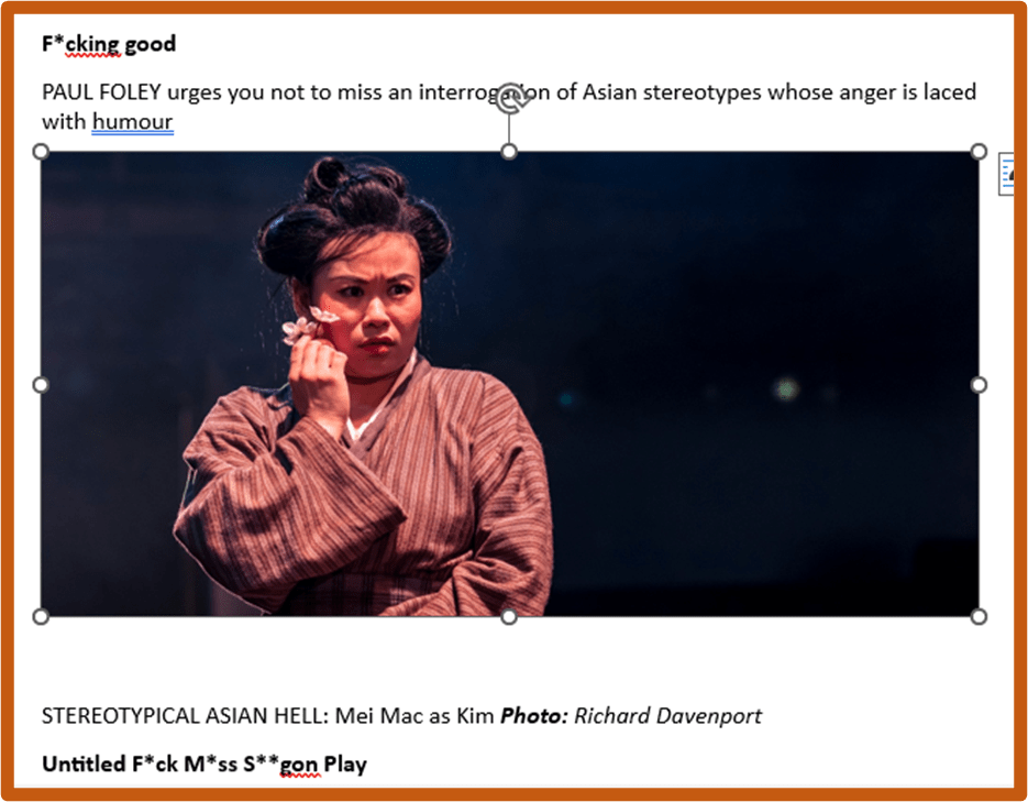The Morning Star review of the play (my blog to follow when done).