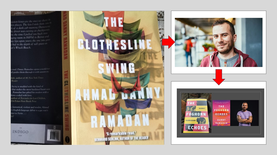 ‘“Tell me a story.” … / “I cannot,” I whisper. I hide my face in your shoulder. I cry. “I cannot lose you.” I pull you closer to me, I cannot lose you after all of our stories. My life is tangled into yours and I fear pieces of me will die with you. … “Tell me something sweet in Portuguese,” I ask Esme, … / “Well, I have love for one word that only Brazilians say,” she tells me.’ … “Saudade is the enjoyment of remembering, a feeling that comes to you when you remember things from the past and feel good about them.” …/ “We are talking about a genuine feeling of happiness that comes from remembering things that are long past.” I let my mind drift as I climb next to you in your hospital bed’.[1] This blog looks at Ahmad Danny Ramadan (2019, Ist. published 2017) The Clothesline Swing London, The Indigo Press and wonders about the therapeutic in the act of storytelling, even those that might pass between an author’s first novel and his second, The Foghorn Echoes (2023). Info to @TheDannyRamadan