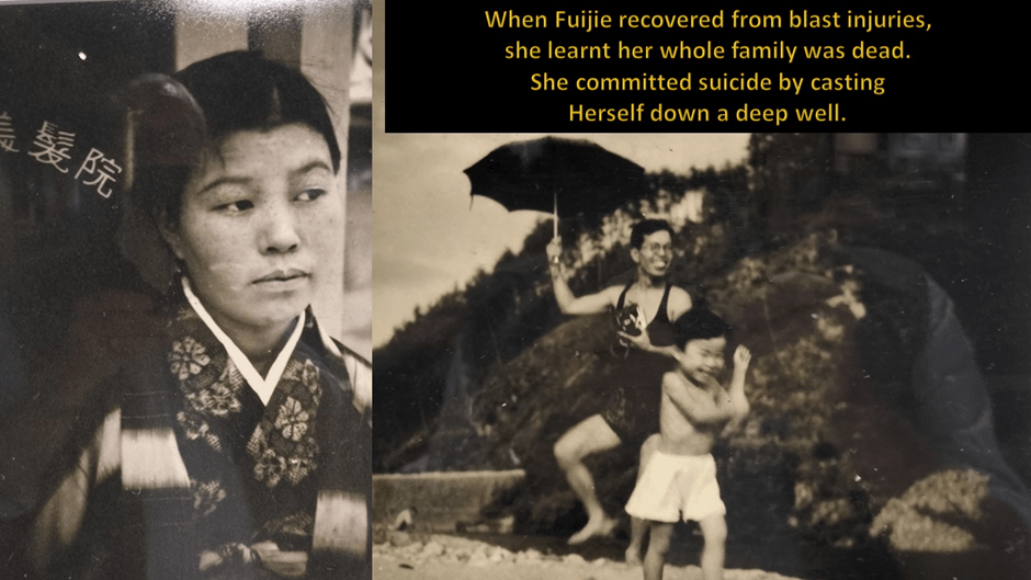 It is very painful to learn of the fate of the family – although that happens only for those willing to enter a section of the exhibition containing a warning about the upsetting material it contains. The story of Hideaki and Kimiko is devastating. Kimiko was never verified as dead or missing. But that she died is certain. There is something one cannot quite get one’d ‘head round’ in this kind of cruel pain. More so, if we even try to imagine the pain of even short survival afterwards like that experienced by Fujie. For she died of her own volition on learning that the rest of her family – husband and beautiful children, the youngest then 1, already dead.