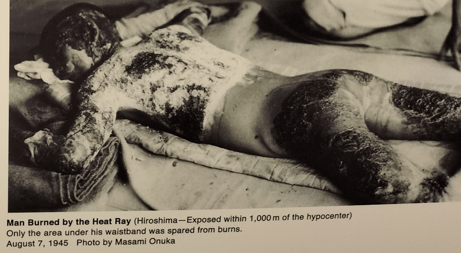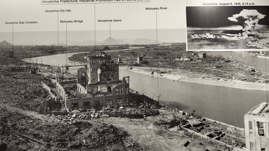 Look again at the picture of Hiroshima before 1945 and compare it to the fateful day and its aftermath, even in the scale of the destruction around the original drop centre or hypocentre. The city looks like a 2-D map, and though I show no comparison, the same for Nagasaki.