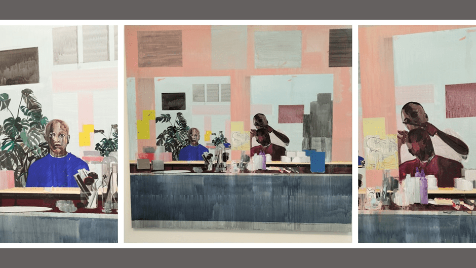 A blog: Tuesday 15th August 2023: In the Barbershop or staring flatly at it. It is a blog about being invited by Hurvin Anderson to think about art.
