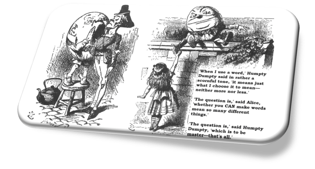 “When I use a word,’ Humpty Dumpty said in rather a scornful tone, ‘it means just what I choose it to mean — neither more nor less.’