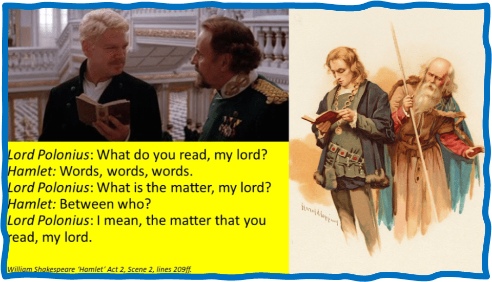 Lord Polonius: I mean, the matter that you read, my lord.William Shakespeare ‘Hamlet’ Act 2, Scene 2, lines 209ff.