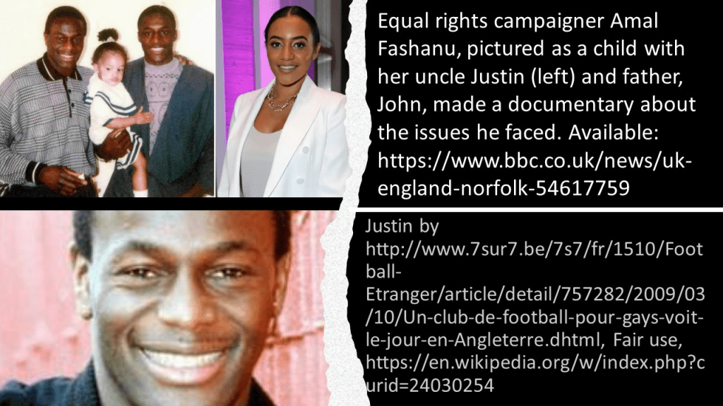 Into this specific issue I am not qualified to make a judgement and I would never be an apologist for the fact that entitled wealthy white queer men can be predatory oppressors of those with less social power and capital, for whatever reason of social marginalisation. It may be Jim Barnett was one such but I am certain this is not the case with the contemporary living queer athletes I have in mind but will not name as requested, because each has had to fight slurs of the worst kind used against them. Some like Justin Fashanu are dead too , having paid the price of being open and receiving instead the imposition of fictions of assault (at the age of 37 he had sex he described as consensual with a 17 year old man – a person with clear capacity of refusal – who accused him of taking non-consensual advantage). The evidence seems to be with Justin these days as his brother John has insisted. Yet do we escape slurs when, however up and coming we may be, we fall foul of the symbolic order.