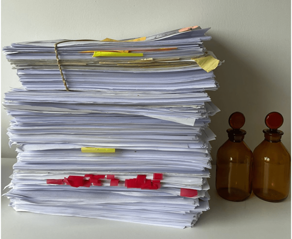 Photograph by Jenni Fagan. About which she tweets: ‘Social work files. Two decades exactly since did first draft memoir on typewriter borrowed from neighbour, very odd to be looking at it now, carried the manuscript around for twenty yrs. before I could even look at it again’.