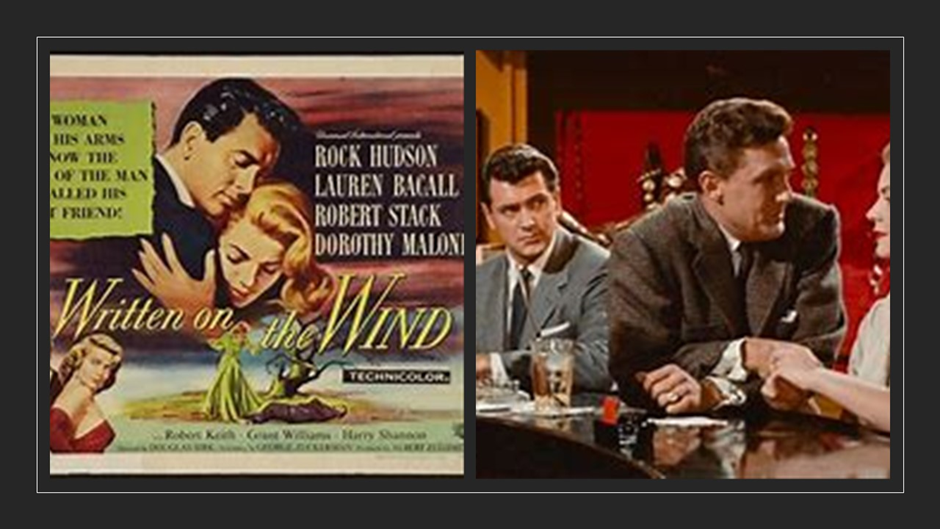 And it wasn’t enough to stress the stereotype of a male entirely conditioned by his biology, Rock would only be allowed roles that male producers thought his female audience wanted. Attracted to the idea of playing a ‘maniacal alcoholic’ and ‘conniving nympho’, Kyle Hadley, in Written on the Wind for Douglas Sirk, publicity manager David Lipton said; ‘his fans would not accept his doing anything shoddy’. That juicy part went to Robert Stack – all virulent machismo – with Rock in the role of a dependable but boring, lantern-jawed but self-sacrificial Mitch Wayne.[6]
