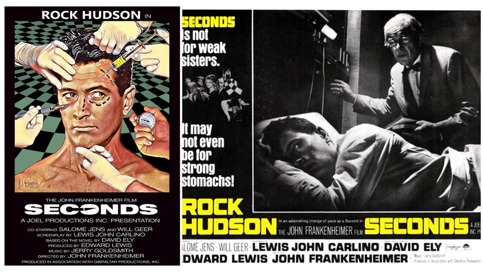 A year later even (1966), he defied the latter by taking the role of a man who has been metamorphosed into looking like him by surgery in Seconds. Though not dealing at all with queer issues – the transformation of a ‘playboy’ (again) is affected in order to be more successful with women (though the director, John Frankenheimer, was influenced by a play-script that did, a play called Epiphany. But the idea of escaping one personality and becoming another and acting it which fascinated Frankenheimer appeared to drive Rock into mental breakdown, as his friends thought it might, and contemporary observers interpreted this as a result of the actor confronting the issues of ‘living a lie’ and, in this film, from now on in Griffin’s words, bravely attempting ‘to unlock a more vulnerable side of himself’.[9]