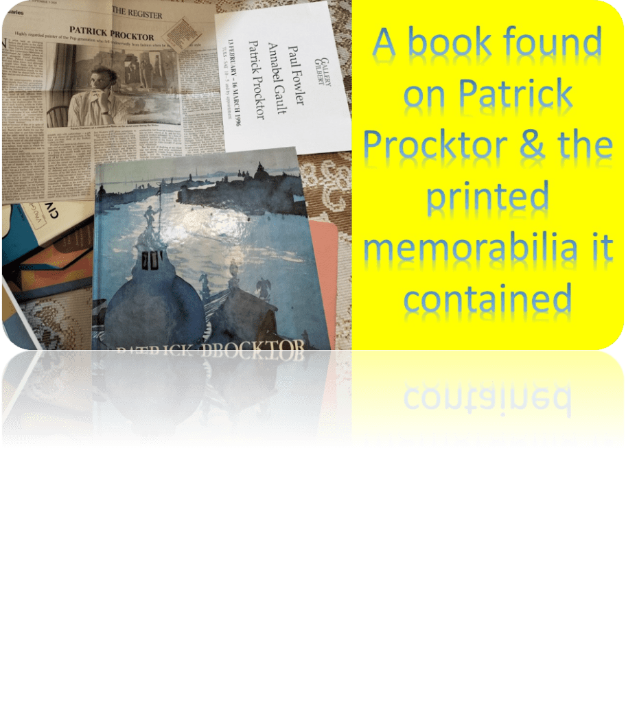 A blog on Ian Massey’s biography (use this link); A previously unknown catalogue of Procktor work I found (use this link); A blog on a book, incidentally on art but of limited financial value, realises treasures of a different kind (use this link).