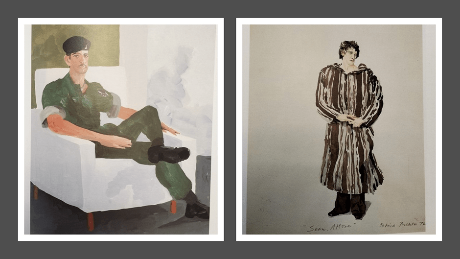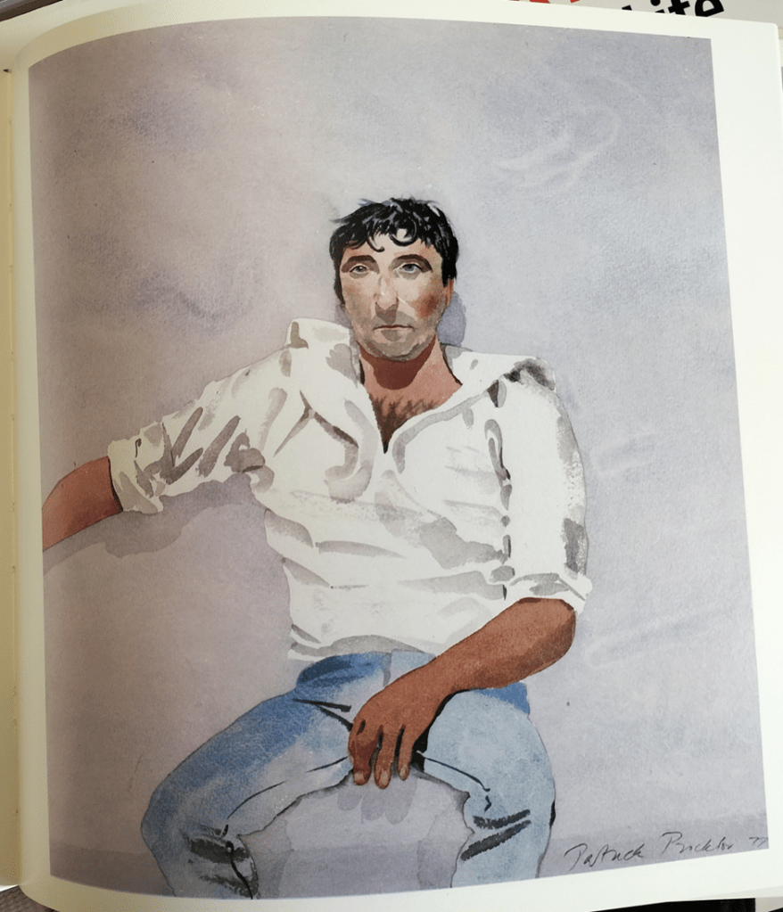 ‘Radio Telegraphist, L/Cpl John Bland’ (left: my photograph from Patrick Kinmonth (1985: Image 35 16” x 12”) Patrick Procktor Venezia, Galleria del Cavallino (in association with The Redfern Gallery in London & Galerie Biedermann, München) & ‘Sean, Actor’ ibid: Image 16 20” x 14”).