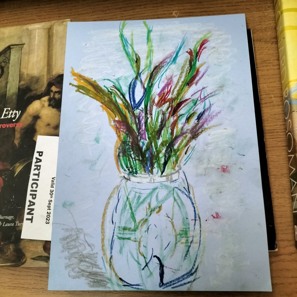 I felt unwell at my course in York today so walked off back to my hotel to rest. On the walk back I felt I ought to stop again and thus took a seat in the art gallery and determined because if that to see the Bloom exhibition on Flowers in Art before I left. It transpired that being an older person, I got in free to the exhibition if I attended a flower drawing session for older people. So I did to tragic effect. Lol.