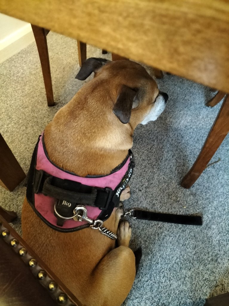 Daisy, who pulls me to the Blue Stone on these days, is accustomed to being bought 2 eggs; boiled, poached or fried – her tastes are Catholic. Once replete with the dish eggs for which she came, sits quietly under the table awaiting the walk home as I eat my Briam, a Greek stew of courgettes, tomato and potatoes, a speciality that you have to book ahead for.