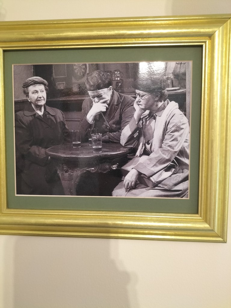 The room got its name of ‘Snug’ in fact because the owners of this café, with its home-made scone reputation, David and Paul, were friends of Tony Warren, the originator of Coronation Street, and a photo of that fictional pub’s snug, run by Jack and Annie Walker, adorns it’s wall, featuring in it the snog regulars of the then Rover’s Return the same three old ladies: Mrs. Ena Sharples, Miss Minnie Caldwell and Mrs Vera Longhurst.