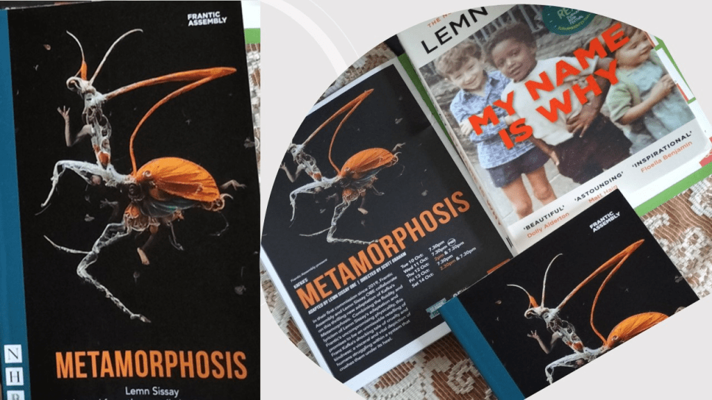 My blog praises the writing of this play and is fascinated by its link both to the translated Kafka original story, which is interpreted freely but with some debt to huge and working debts to the themes and language of the translated. Hence we deal here already with a number of artists in authorial role, or mediating it, Kafka and his translators, at least, even before we deal with Sissay’s text. Yet the text I read, with its many quotations from established translations in part is itself a product of many other working projects, not least Sissay’s memoir of being brought up in foster-care and children’s homes My Name is Why, which mediates the adaptation through that experience without claim that that the experience is an individual one – it is the fate of children brought up in care. And the text is that brought to the reader before the end of rehearsals and a provisional draft of a final text for that reason, for text changes as a result of many influences – creative and pragmatic – that stem from theatrical direction, realisation (including setting, properties, costume and make-up), actors – including the role of their ‘improvised’ improvements to the text spoken by their character, as well as the specific delivery of text as voice (with issues of accent, tone and pronunciation), gesture and movement, These factors are not only in control of each actor but the ensemble, since stage movement is always a matter of both co-operative dynamics and the proxemics of temporary placements that is relational within the ensemble of the cast and between individual cast members, to say nothing of the role of influential observers of rehearsal who are capable of changing the outcomes achieve by formal means (notably the director) or informal ones – by identifying possible audience response of a variant style, such as laughter or tears.