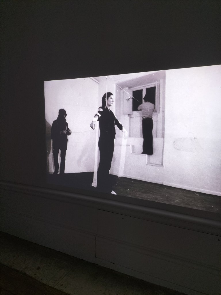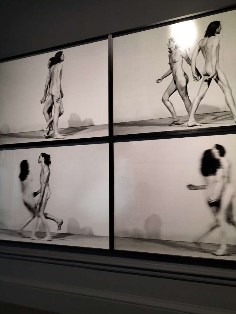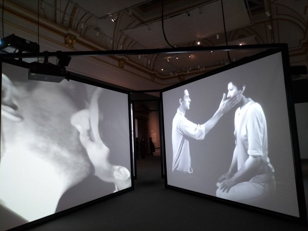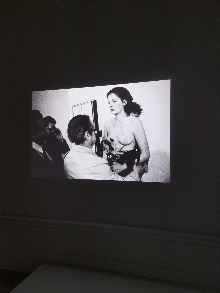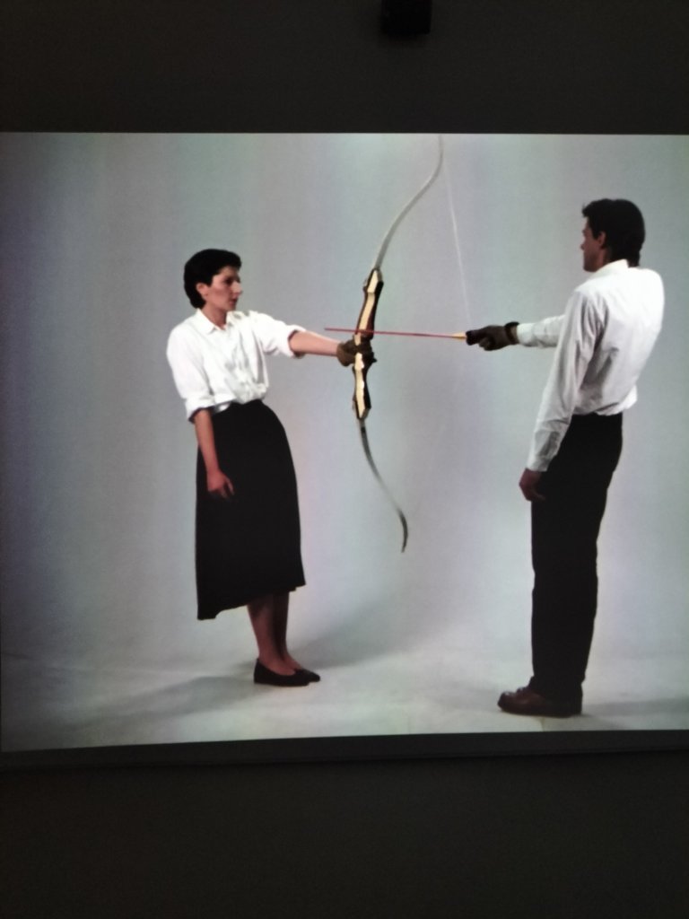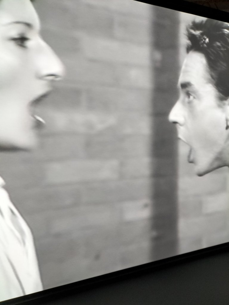 The next room had huge impressive videos of the performed confrontation, involving exchanges of verbal, passive and violent, (in the form of mounting frequency of slaps) between the female artist and her male partner partner. However, I feel it detracted that this was in the same room, in a far too adjacent space to the first live performance I saw, that of Imponderabilia.