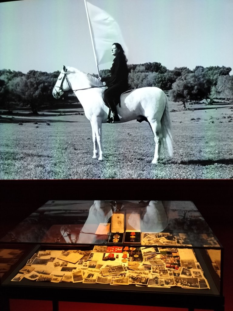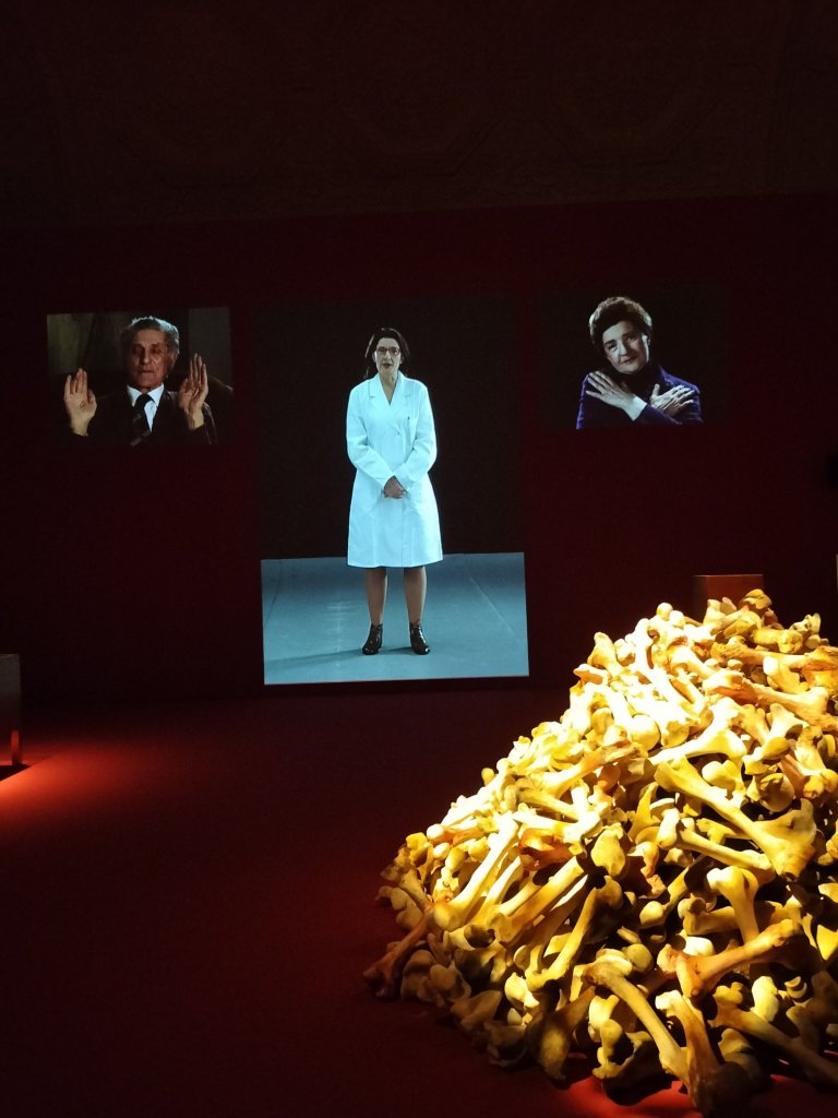 The pile of bones is uninhabited, has no-one bloodied or active on top of it, and has no smell at all. Indeed it even looked artificial as if coated if real or actually simulated. The material relating to her Yugoslavian Communist leader father, from the hegemonic Serbian ruling group of course, was impressive to see as was the display of Communist nationalist loyalty against which the artist’s ambivalence clearly reacts if impassively. The film of both mother and father moved but I was not in the moment of a performance ever.