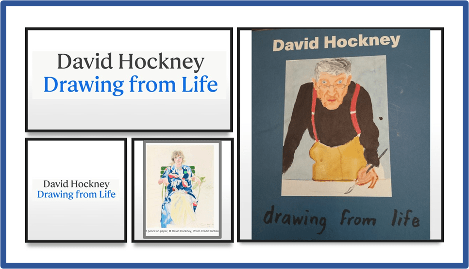 Drawing from Life for a portrait artist is rarely about ‘struggling for a likeness’ according to David Hockney – what a person is ‘like’, the ways of understanding what a person is like and how we show what a person is like each change, and, as each does so, interact with and change each other yet again. We need to understand then the complexities in understanding this artist’s living career as artist and person and why says that: ‘Change is the only permanent thing we have’.[1] My visit to the National Portrait Gallery’s (NPG) exhibition Drawing from Life on Tuesday 22nd November and reading of the catalogue, Sarah Howgate [ed.] (2023) David Hockney: drawing from life , London, National Portrait Gallery Publications- with some thoughts about the curation of exhibitions of living masters.