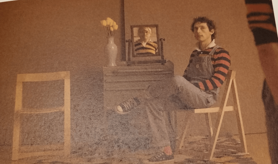 And sometimes Gregory is represented in ways, As was Laur Hockney, in ways that allowed experimentation with forms, genres and styles in art that depended on a good sitter, empathetic to the artist’s explorations of style. An Image of Gregory (1984) is one of his best cubist explorations of the meaning of representation in art, which plays not only with the fragmentation of the image and its reassembly in ways demonstrating the complexity of human perception processes which too start (using the saccades of the eye) with details that are then assembled into wholes in the visual cortex but also with the concept of framing (and reframing) the image. If too much of our attention is not taken up with thoughts about the nature of perspective in the context of drawn flat surfaces here (which surfaces get angled against each other in this doubled painting) then that Gregory, even if he was a good sitter and sat still like Laura, is actually as an image in constant motion, either as a result of the eye of the viewer, the accidental and intended marks of the maker or Gregory’s own restlessness as he grew to greater maturity and self-determination.