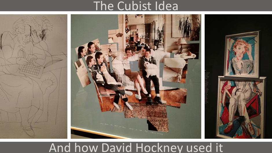 Hockney used cubist techniques in his photocollages, and in a sketch he did of Laura doing a crossword as she aged and became as well more forgetful. In a sense, in all we see him conveying ideas about the sitter, the demands of compensations of their relationship and the pleasure of making images of them during all those changing processes, including Hockney’s ideas about art.