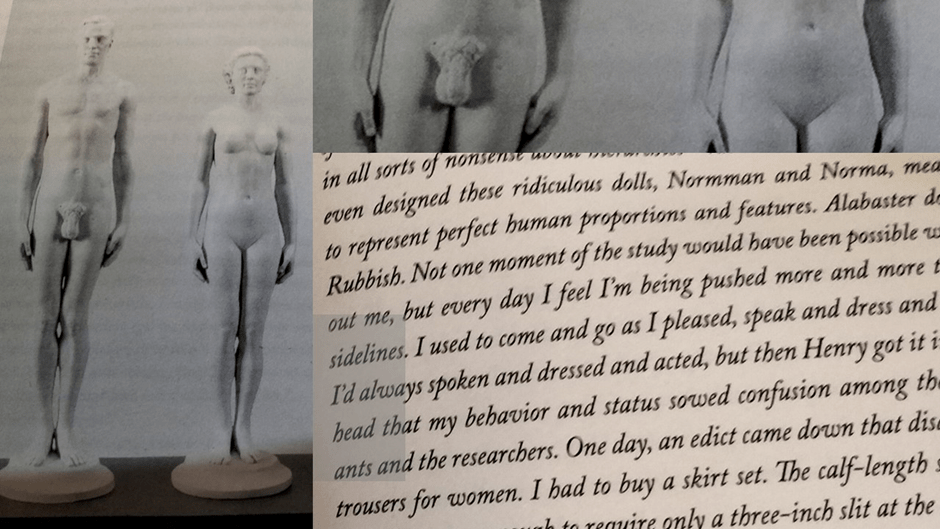 The sexologists, led by George W. Henry MD, behind Sexual Variants worked from the basis of sex/gender norms and this was one of the reasons that the real Jan Gay believed that she was marginalised by the group. Jan spoke of two dolls representing the ‘normal’ male and female and called Normman and Norma (it is interesting that these names ensure that the word ‘man’ is uncut, though woman is merely a feminised Latinate form of the word ‘Norm’. Jan Gay wrote of being marginalised more and more by Dr. Henry because she refused to conform to feminine dress and appearance, or even seemed to respect that ‘woman’ was the only thing that mattered about her, who was an expert interviewer, researcher without relying on an institutional identity as medic or academic. Jan related her problems to the very values represented by Henry’s institution valorising Normman and Norma and placing them in view of the participants in the research and staff. Jan Gay spread ‘confusion’ by breaking though normative boundaries.