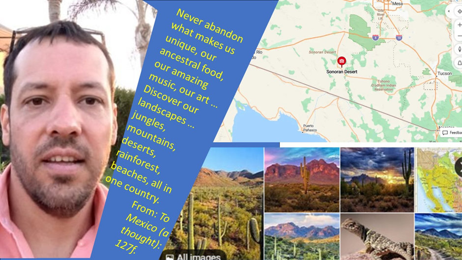 It is only recently I have realised that JP is Mexican, and he is proudly so – of its traditions, history and religions, although there seems an over-riding fondness for Christian traditions whether JP is a Christian or not (I do not know) but If he is, he is a Christian aiming at worldly potential of shared happiness as well as the other world,. More than one poem celebrates the ‘rainbow’, that transform the world – one (A Candy Basket) by turning the ‘gold’ onto which a rainbow lands into ‘honeysuckles / Flying / Through the air’.[7]