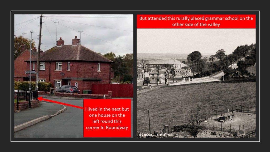 The grammar school was, as it was intended to be, a dividing experience. My first home was near the largest Secondary Modern, and passing it in the evenings, then still a frightened first form boy I was ripe for bullying. There was no bullying I remember at the Grammar School but I felt singled out in other ways for few others lived on council estates and when it became known that my mother was a cleaner at the school, it was, let’s say, treated as a subject of embarrassment, an embarrassment in my weak shame, I shared at the time. Except by O levels I was somewhat of a teenage rebel and had taken in the influence of admired teachers, such as my English teacher with the Cambridge Leavisite background with a Raymond Williams inspired socialism and a Marxist Workers Revolutionary Party (WRP) teacher, who sold their newspaper in Huddersfield, who taught History and Marx together.
