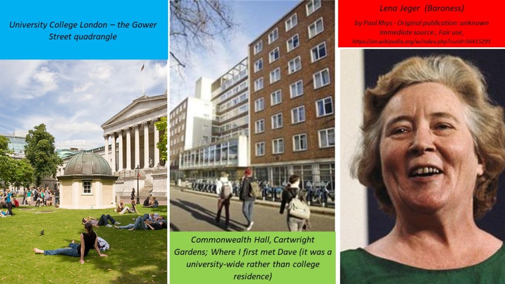 Of course, though we were in different Labour groups (me at University College, he at Kings), we canvassed together for the Labour, for Lena Jeger whom we met with her stiff comradely manner (straight from the Gulags some said for she had lived in the ambassadorial residence in Moscow) probably in her last election for the Commons and he kept me solidly in Labour. Not for Dave those who called Barbara Castle a class traitor for her part in the In Place of Strife legislation under Harold Wilson.