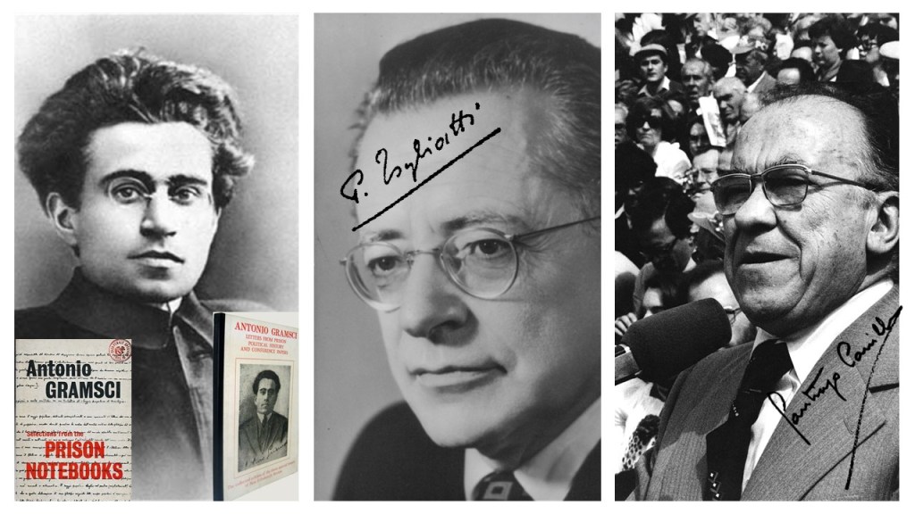 The British Road was, as far as I was concerned, a EuroCommunist document, mirroring the approaches of Togliatti of the Italian Party (PCI) and Santiago Carrillo of the Spanish Communist Party (PCE), both of whose books, which I read and absorbed, owed much to Antonio Gramsci, writing from fascist Mussolini’s cruel jails, and whose books (in the editions shown in the collage below) I revered.