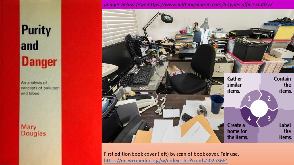 And, if the word ‘life’ has fulsome associations, so does clutter. Even in blander definitions, like the one at the link, it carries with it notions of disorder and impeded efficiency. It is technocratic to the full. In popular mental health discourse, moreover, this view of things is backed up by studies. Cited studies, we are told, supported the notion that people, especially older people, need to sort themselves out and live in the present not in their accumulated memories in order to be healthy and ‘happy’ (I balk at the assumptions in that last word).