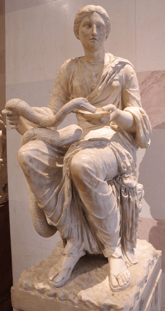 Hygeia, Greek goddess of health, Roman copy of 3rd Century BCE Greek statue. Photograh by I, Sailko, CC BY-SA 3.0, https://commons.wikimedia.org/w/index.php?curid=16480848