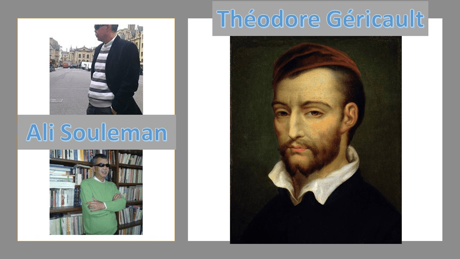 But I put the word ‘case’ above in scare quotes for a reason. That reason is that nothing in this recounting of the process of diagnosis stays where it should be in accounting for the symptoms of an Obsessive Compulsive Disorder (OCD). If his manner of ‘sensing, thinking, feeling and action in and on the world’ is a symptom of OCD, the writing here too soon seems more likely to befriend the symptom rather than any abstract thought about the disease and its possible amelioration associated with conventional and normative psychiatry. This moment described at the point of the quotation given above is, after all the lead up to the act of possible negligence (of all and every principle of health and safety involved) in which Tom sets a blow torch to his work so fat to singe it. The material of that work are so intrinsically flammable that this feels less of an ‘experiment’ in art that is ‘obsessively compulsive’ than an act aimed consciously aimed at a wider destructive intent than experiment alone accounts for. This is the moment, after all when Tom in the book creates his own wreck – of his work as described thus far and potentially of much more, including his life. Tom seems to will wreck upon himself to match the experience of the other two main subjects of his artwork and this book – the Syrian TV journalist blinded by a terrorist bomb twenty years ago ‘believed to have been sanctioned by the Israeli state’ (and now a postdoctoral research fellow in St. John’s College at the University of Oxford) Ali Souleman, and the painter of internal and external terror and that phenomenon oft-labelled ‘insanity’, Jean-Louis André Théodore Géricault (26 September 1791 – 26 January 1824).
