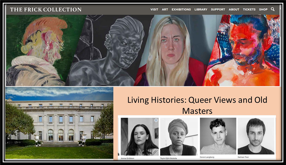 From September 2021 to September2022, the Frick Museum in New York decided to place each of 4 classic paintings from its collection one by one ‘in conversation’ with a newly commissioned artwork from painters who are currently working and who identify their work as from a queer orientation to the world. Reviewing the publication based on this experiment, Michael Quinn in the Gay and Lesbian Review says: “Pairing paintings might create a “dialogue”, but who decides what these strange bedfellows are saying to each other?”.[1] This blog reflects on Aimee Ng, Xavier F. Salomon & Stephen Truax (Eds.) [2023] Living Histories: Queer Views and Old Masters New York, The Frick Collection [with Lewes (UK), GILES].