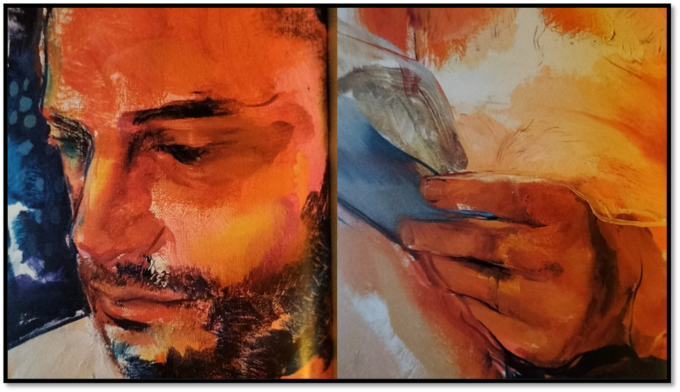 There is so much to explore in this book, despite its small size, but I intend to end with a look at a picture I find exceeding beautiful and yet one that has the potential to undermine some effects of heteronormativity and homophobia. That is the portrait by Doron Greenberg called The Lover. Its painting with Holbein’s Thomas More (1527) helps me very little, brilliant paintings of beautiful men though they both be. Greenberg is correct to see the distinction between them that he wants to emphasise as that between his interior take on a more vulnerable masculinity and Holbein’s concern with powerful exterior look in the face and dress and environment of Thomas More. Such contrasts hardly surprise and are unlikely to have much to say in themselves about queer views of the masculine per se.