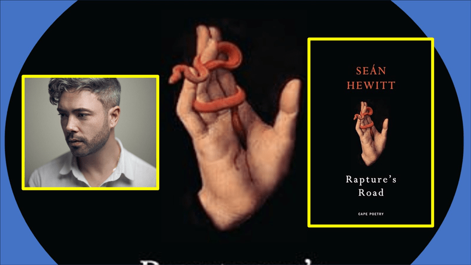 I have waited a long time for the publication of this volume, for I love the prose and poetry of poet, translator, scholar and memoirist, Seán Hewitt, but having read this new volume I am cautious for I often get him wrong when it comes to lyric expression, as I think he once told me in a public place (I don’t know him personally by the way, just follow his career and honour his queer heroism). In a tweet, I think I remember him praising a review of Rapture’s Road, as doing precisely what critique of poetry, as poetry, and not a statement or coded message, ought to be. It’s a very short review so why not quote it in full. It’s by Oluwaseun Olayiwola in The Guardian’s ‘Best Recent Poetry Roundup’: