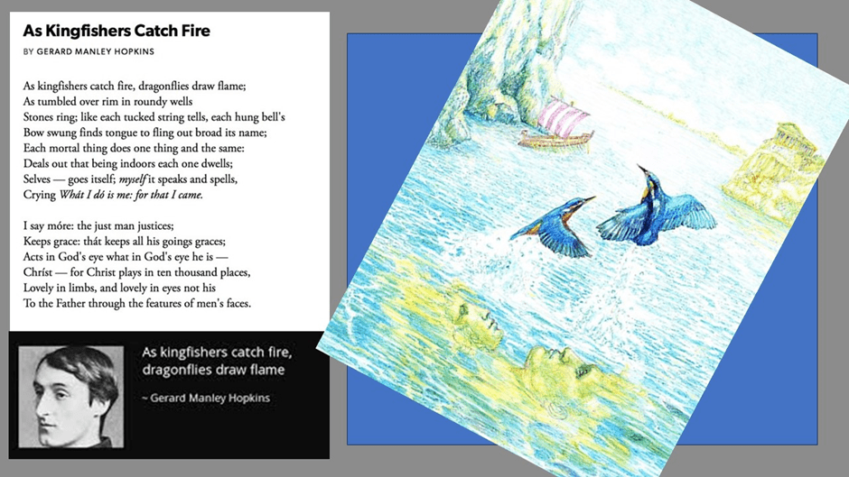 Likewise the sly allusion to Hopkins famous ‘When kingfishers catch fire’ in the poem Alcyone, which returns the poem to its Ovidian metamorphic roots in the transformation that created the ‘halcyon bird’, that of Ceyx, drowned at sea, and his widow ‘Alcyone’. The context of Hopkin’s poem is only nearly there – in the ‘superior light’ for instance – but rather metamorphosed like Alcyone herself, for she is also the poet’s mother morning her own dead husband, but that (and its almost the Hopkins poem opening) that ‘the sweet / water burned at its touch’ – a kingfisher has caught fire though the healing is minimal, for son and mother mourning. But it is not the neuroticism of the Hopkin’s poem ending: