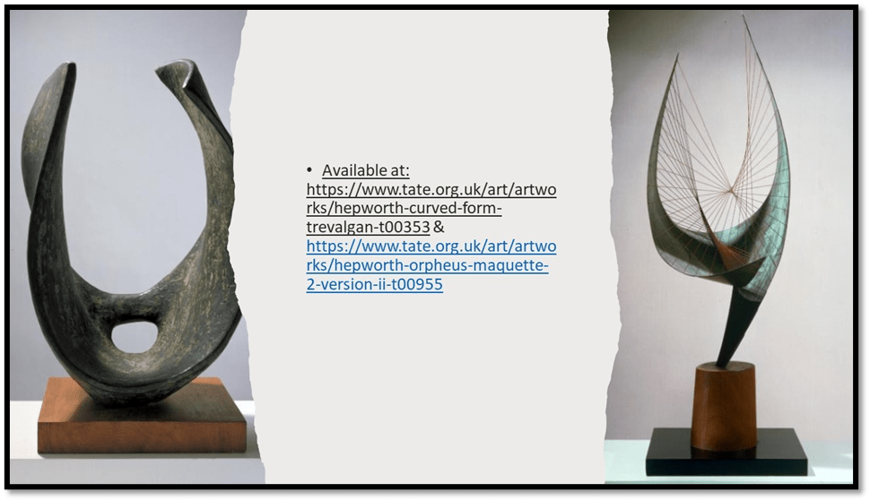 What are we waiting for? For him to dress as E and to deny the binary otherwise explored – his ‘double-self’ Minotaur having now disappeared. I sometimes think an androgyny drives the beautiful artworks with an Orpheus connection by the wonderful Barbara Hepworth (see the pictured works below and my blog at this link), and these are truly beautiful. And, to return to Titian, these works do not use an androgynous ideal, in the same way Titian does, if Titian does use Orpheus in The Flaying of Marsyas, to justify the cruelty of world order and to relish the male competitiveness it sadly plays and sings sad songs to. I think Barbara Hepworth is here in United Nations mode in every domain of politics.
