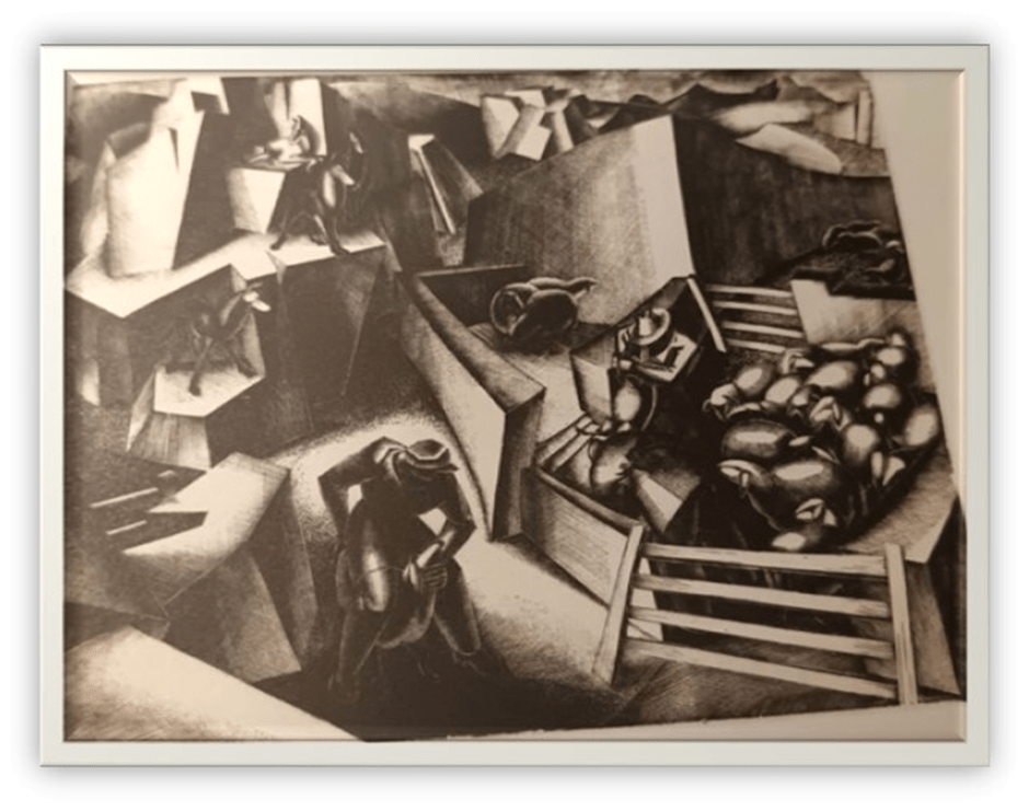 I did miss however seeing, from the catalogue examples, Agnes Miller Parker’s Sheep Dipping in Wales, for here is a woodcut, using traditional techniques of chiaroscuro for truly creative ends, and representing the very best of Vorticist conceptions of art. These conceptions re quite difficult to articulate and certainly not just a derivation of cubism as Parker’s mentor, William Roberts, always insisted. For in examples of true Vorticism, we don’t see only many perspectives on a thing (as is the case of the cubism of Picasso and Braque) but a spiralling of space in ways that seems to expand its range while maintaining a a sense of the claustrophobic containment of life-forms, human and animal: