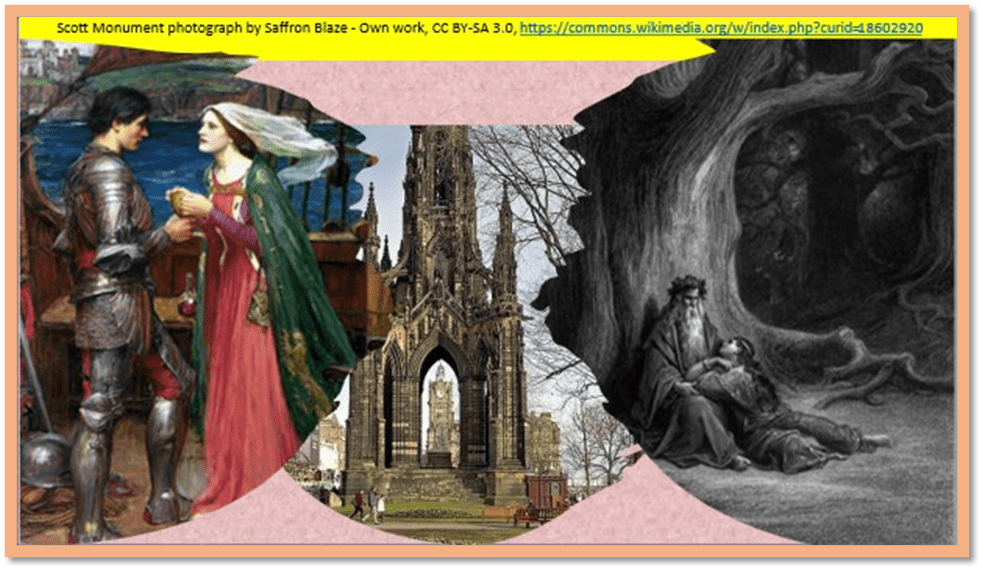Alfred Tennyson as Poet Laureate, imaging himself the heir of Chaucer, Spenser and Milton (who planned but never wrote an Arthurian epic), made himself one with that selective ideology. It was an ideology reflected in other Victorian revived Arthurianisms, implicit in the artists who reconfigured the Neo-Gothic British Houses of Parliament in Westminster, replete with Athurian imagery, the English Pre-Raphaelites and George Meikle Kemp, in Scotland, labouring over the Scott monument fearing exposure as a common draughtsman, to that strange proponent of the Tory Union of British nations, Sir Walter Scott.