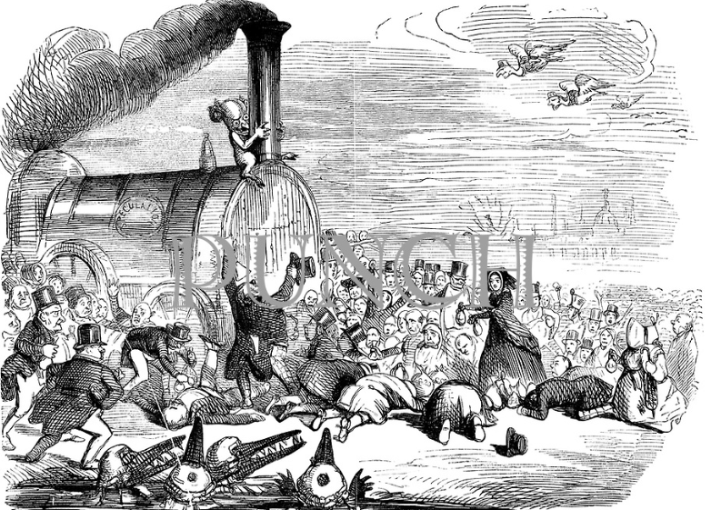 Personal psychology grew in ways that cut out any effective altruism by its admissions for the necessity and hegemony of self-interest. Helping others was a demonstration of self not an aim that stimulated cooperative mutuality. Growth was, in fact whatever the theorists said in increasingly unread books replaced by the dilution of counselling and self-help textbooks (a growth industry), a value in itself. What was meant was the growth of the individual – a concept justified though now more by Sartre and Camus than Daniel Defoe or other Robinsonade makers. Growth however still has need of others (and often of many others) – they are a resource for its exploitation as labour, or consumers or as reflections of personal power.No-one wants to be a Juggernaut that has no-one else’s bones to crush under its wheels, as was the point made (though of lower middle-class investors) in the famous Punch cartoon of the Railway-mania of the 1840s where the train represented the massive mobile icons of a people-hungry (as Victorian Imperialists saw it) Indian pantheon of deities.