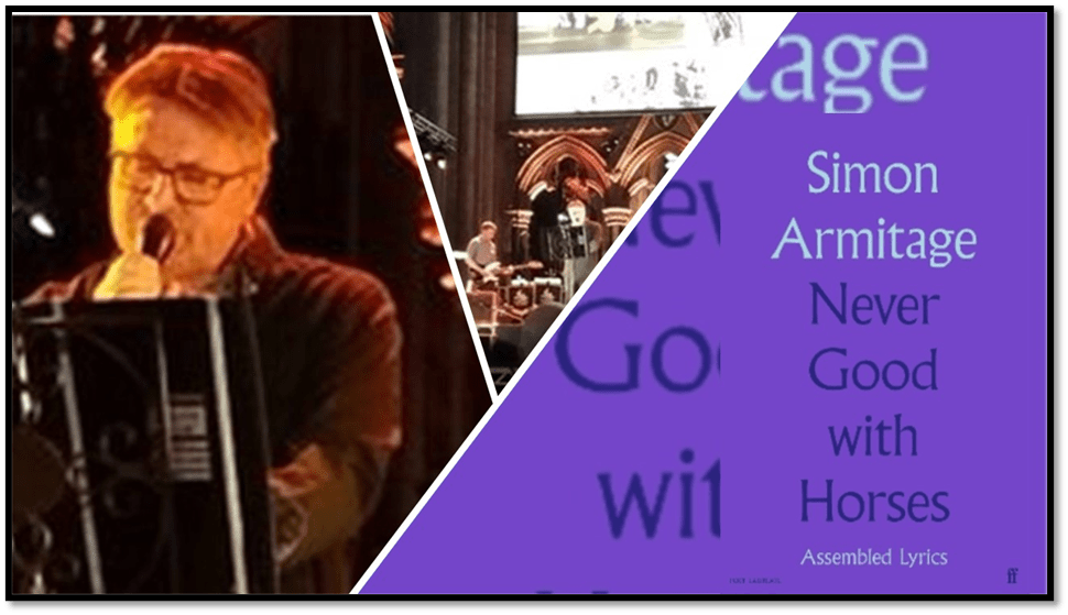 I have to say I recognise that descriptions of how some song lyrics, and songs with their music integrated in the moment, stay with me, or come back when they are suggested by title, trenchant or subtle quotation, or snatch of sound. And I have to say these lyrics (by which word I mean entirely herein the ‘words for a song in their formal printing and delineation like poetry) do that for me. It is likely that will lead to facing Stacey Kent and Jim Tomlinson as an integral part of that experience sometime. No matter, these songs are capable, even in the partial form of the printed word, will live in me. And here I think I disagree with some artists who talk about lyrics as an unliving fragment of the experience of song, as virtually the experience of song deprived of what is a large part of its animation. According to Dorian Lynskey, Jarvis Cocker put it thus: “seeing a lyric in print is like watching the TV with the sound turned down: you’re only getting half the story”.[3] While Lynskey says that Ishiguro agrees I think Ishiguro’s pronouncements in his Introduction to this volume are much more nuanced. They are even more obviously nuanced, because essentially less playful, than Simon Armitage’s words on the matter, who has a thing or two to say about the distinction between poetry and song lyric (see my blog at this link for a further consideration of Armitage’s views).