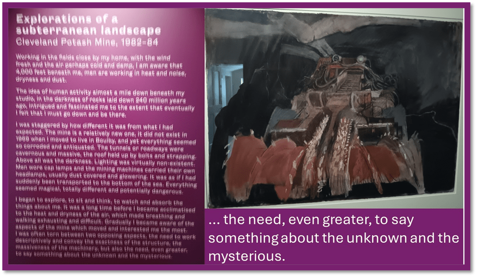“It is interesting to have the gallery showing mining art whilst it is still very much alive – Boulby Potash mine is still open to this day.