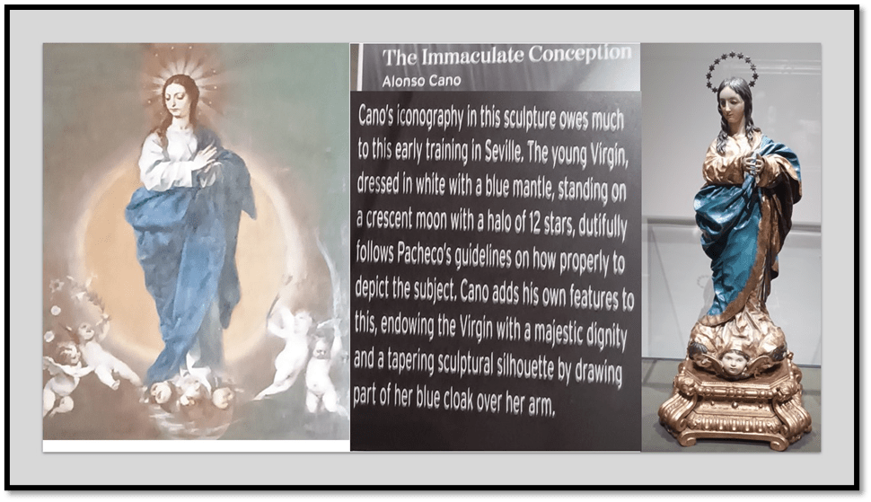 But I could not help but see that the Spanish Gallery had benefited from its rehang over the Winter. In particular, it was doing much more in showing the wonders of Spanish polychrome statutory which I wrote about when I used to volunteer there. You can see that blog at this link.Much more could be said now, but I don’t intend to do it, just to show some of the wonders, and not all, of the clever curation around this rehang. For instance, though Cano and his rather conventional Immaculate Conception Counter-Reformation may not be your cup of tea, it works so much better where the painter-sculptors work in 3D and 2D are directly comparable, as in the Main Hall of the Gallery.