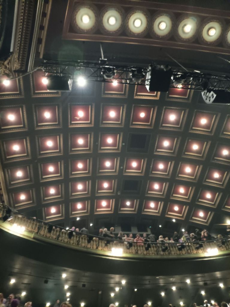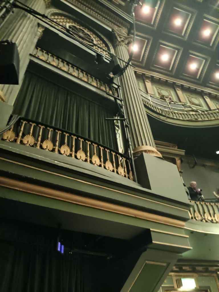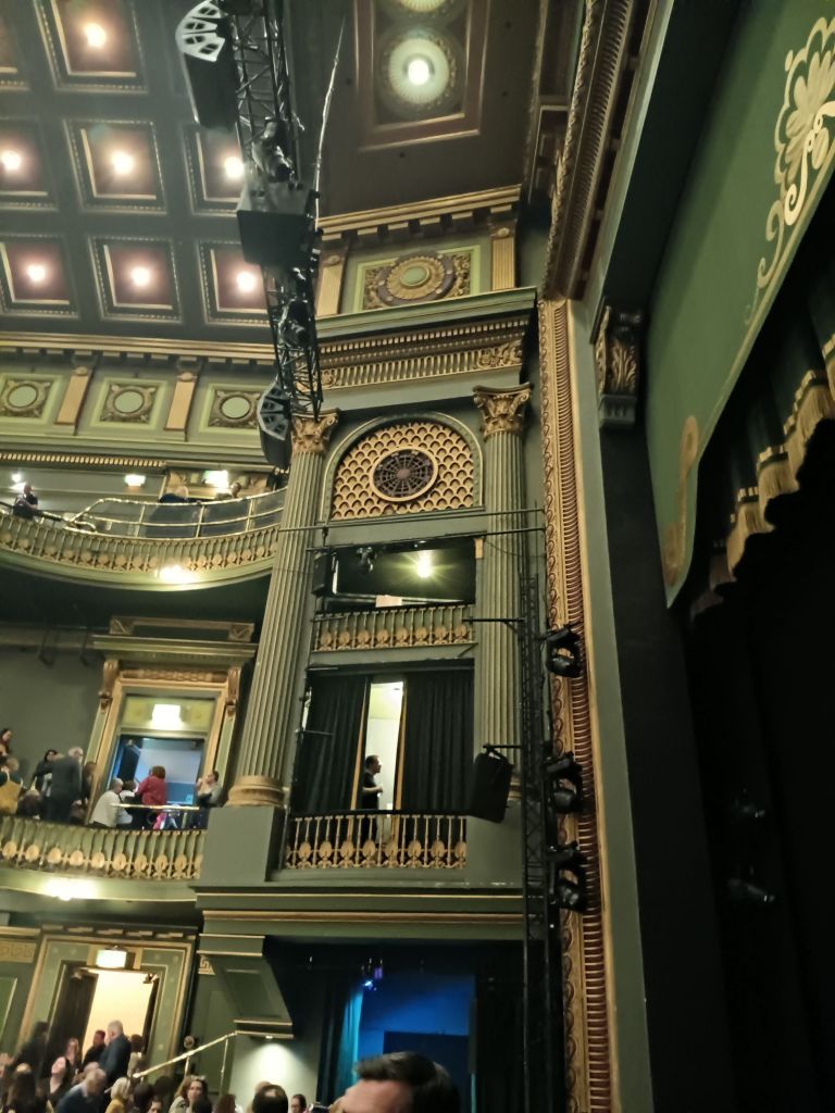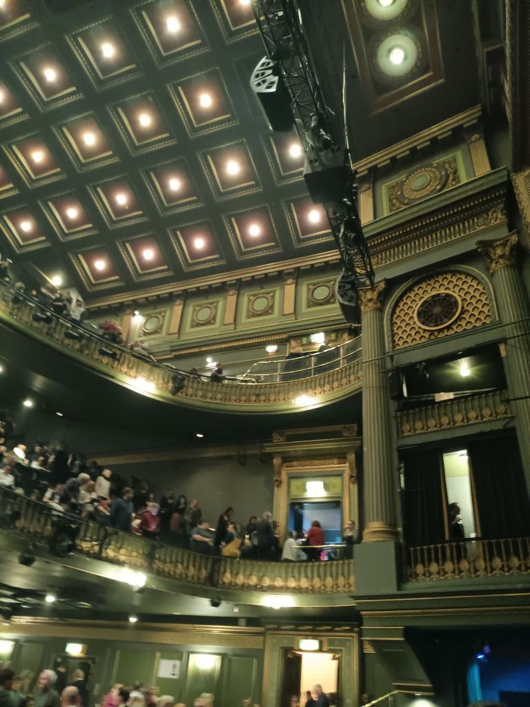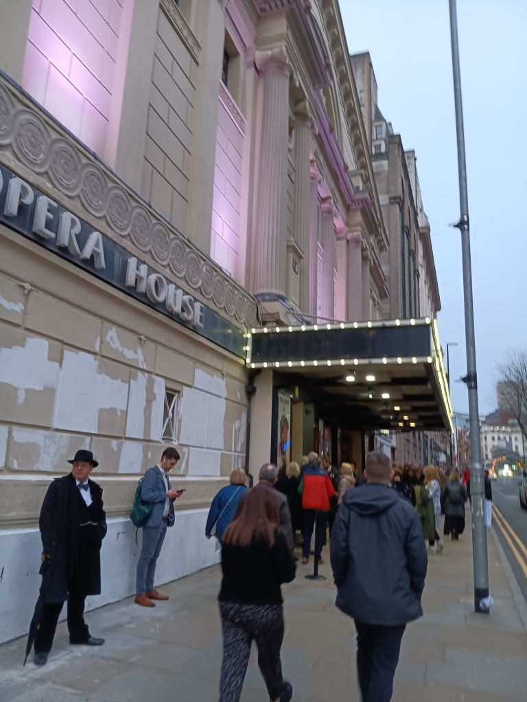 There is something truly Dickensian about all that Veneering guarded by welcomes looking like (after all it is Manchester darling) they might be clubland bouncers but for the house livery.. Coming upon a theatre from an age more proud in over-grand appearances that hide red brick behinds, certainly set thevtobe of a city Iblike but can not love. Grand appearance, where it isn’t wearing away, as in the Opera House, always feels a bit pretentiously precious bruiting its usual fare of pantomime and Julian Clary, but that is so of London theatre land too.