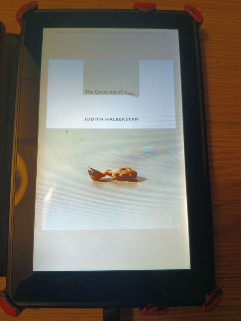 But I rush to the end, for the emotion of the journey started earlier, covered only slightly by reading on my Kindle an academic text by Juduth Mandelstam called The Queer Art of Failure, a necessary text for someone as obsessed as I about the ridiculousness of positive thinking ideologies and reflecting on a lifetime in queer politics.