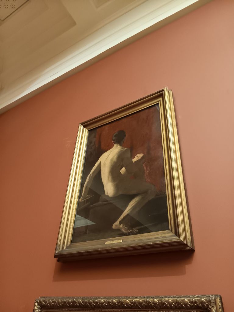 But less of history. I love the male nudes of William Etty, and Manchester has a beautiful Seated Male Nude. For a long time, Etty was feted as a painter of robust and fleshy female nudes, and Sotherton Manchester example has an interesting history, for it was painted on material with such female Nude sketches on its rear. William’s true preferences for his guardsmen models, often scouted by himself, will out.