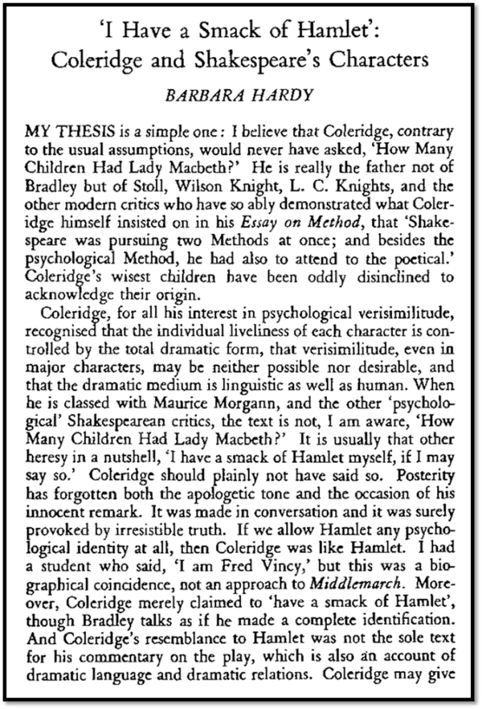 Even the introspective Romantic poet, critic and intellectual Samuel Taylor Coleridge, with respect of this line felt he had ‘a smack of Hamlet’, though the doyen critic Barbara Hardy in 1958 (I was 4 at the time, though I may have felt a little bit Hamlet-ish) felt it was only ‘a smack’ and not a full identification.